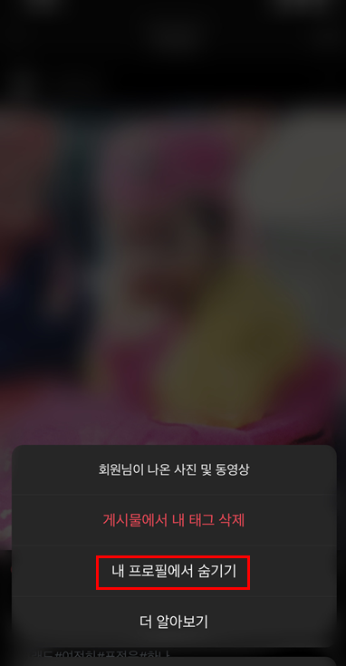 2. 피드에 이미 태그되어 추가된 사진을 삭제 / 숨기기 하는 방법 (당장 태그된것을 숨기기)